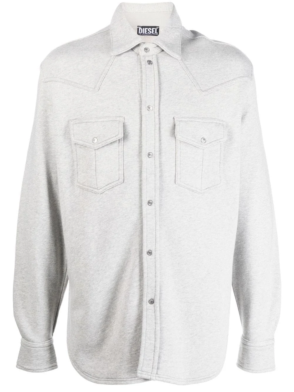 S-Ocean-E1 cotton shirt jacket Highlights - Light grey - Cotton - Classic collar - Front press-stud fastening - Long sleeves - Two chest flap pockets - Curved hem Imported Composition Cotton 100% SIZE & FIT Model measurements Height 6 ft 0 in(1.84 m) Bust/Chest 35.82 in(91 cm) Hips 37 in(94 cm) Waist 28.34 in(72 cm) FittingInformation This piece fits true to size. We recommend you get your regular size Cut for a loose fit Made with a mid-weight fabric