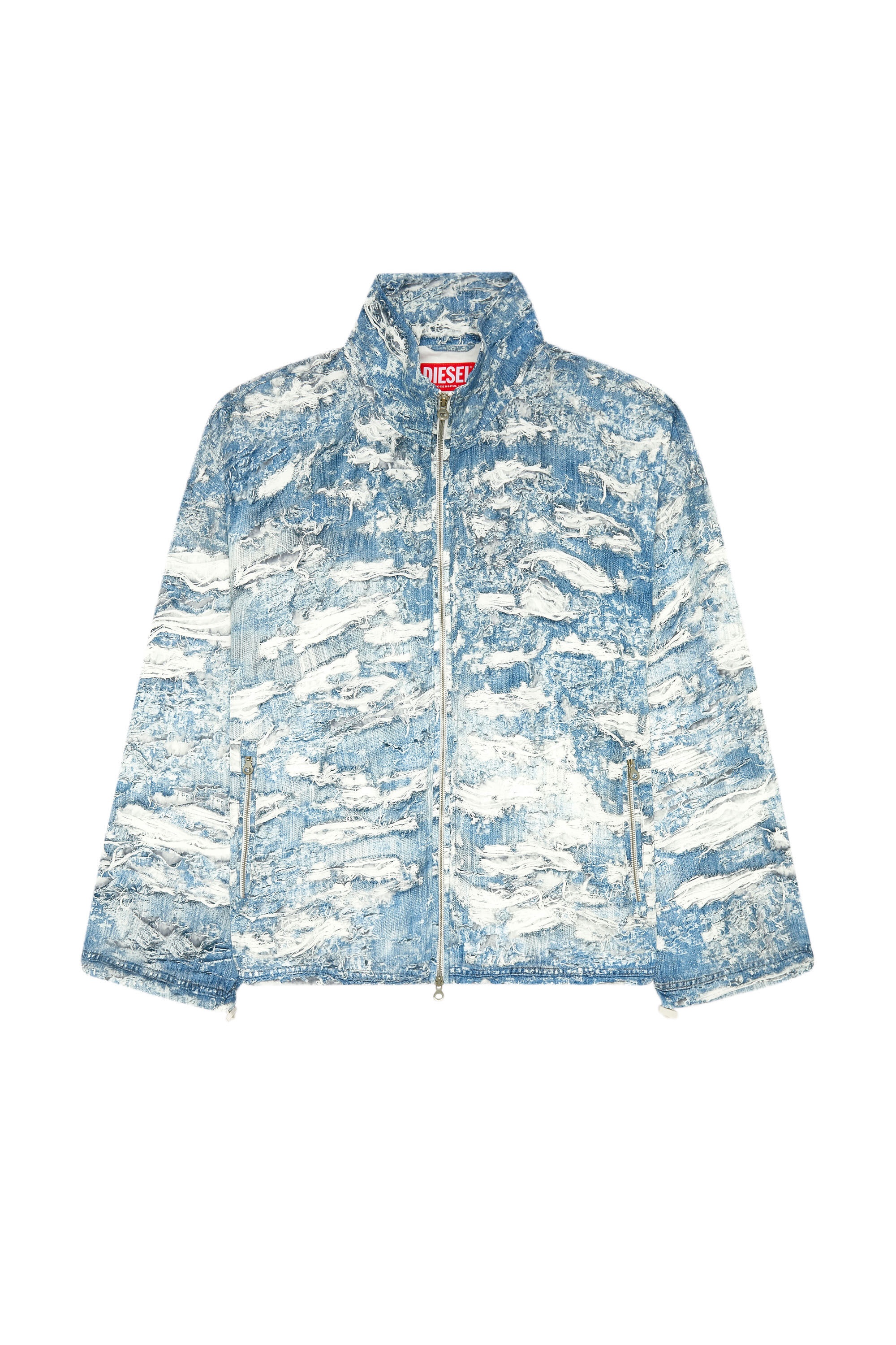 Product Description A trompe l'oeil riff on an iconic runway look, this men’s windbreaker jacket features an optical illusion – the shredded blue denim with its signature ‘Tiger Break’ slashes is a realistic print placed on smooth and fluid twill made using a mix of responsible viscose fibres. The oversized shape allows for additional layers and cinches with bungee cords at the hem. ID: A128490IMAF Size & Fit Model is wearing an IT size 48 and is 188 cm / 6'2" Check the size chart to choose the correct size. Materials & Details Composition: 100%Viscose-Rayon Loose fit and zip closure High neck and 2 zip pockets Elasticated cuffs Drawstring hem Cotton lining