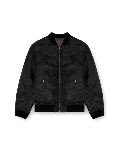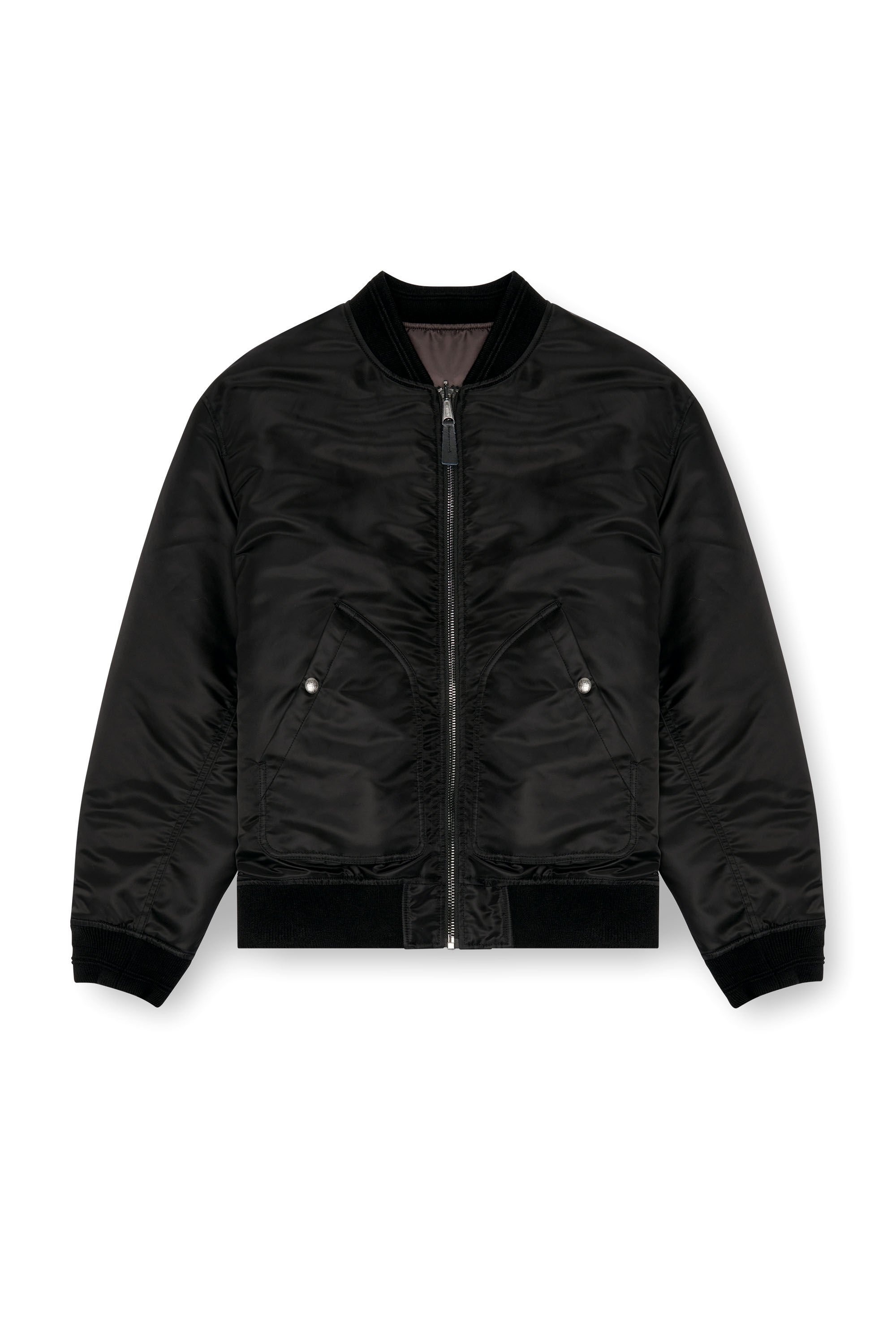 Product Description Men's nylon bomber jacket, cut from certified recycled nylon. It's lightly padded for warmth, and detailed with a tonal Oval D outline embroidered on the back and slightly ruched seams along the sleeves. ID: A144080HCAS Size & Fit Model is wearing an IT size 48 and is 188 cm / 6'2" Check the size chart to choose the correct size. Materials & Details Composition: 100%Polyamide-Nylon, Rib 88%Acrylic 11%Polyester 1%Elastane-Spandex Snap-button pockets Ribbed collar, cuffs and hem Zip closure Lined and padded