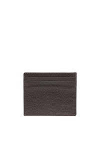Product Description Men's card holder crafted from grained leather. Detailed with embossed branding on one side and a silver logo plaque on the other, this slim accessory holds six cards and has an additional discreet slot in the middle. ID: X09018P0685 Materials & Details Composition: 100%Cow Leather 3 card slots on each side Slot in the middle