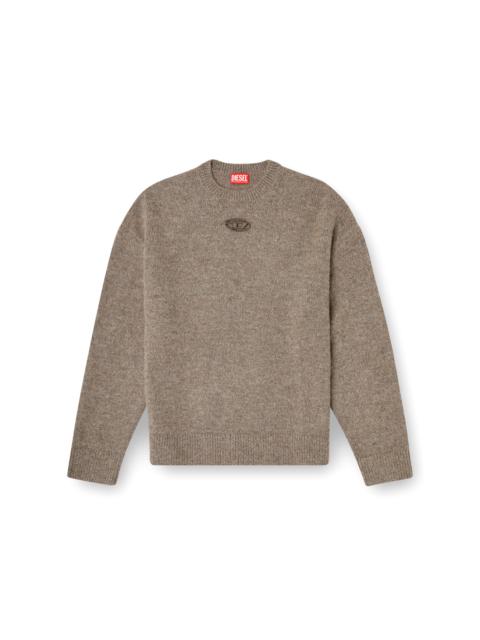 Product Description Spun from chunky yarn rich in responsibly sourced wool and alpaca, this men’s sweater is soft, warm, and built on a classic silhouette. An embroidered cut-out of the iconic Oval D logo disrupts the front, adding an unconventional Diesel twist. ID: A208210TKCZ Size & Fit Model is wearing a size L and is 182 cm / 5'10'' Check the size chart to choose the correct size. Materials & Details Composition: 50%Wool 30%Polyamide-Nylon 20%Alpaca