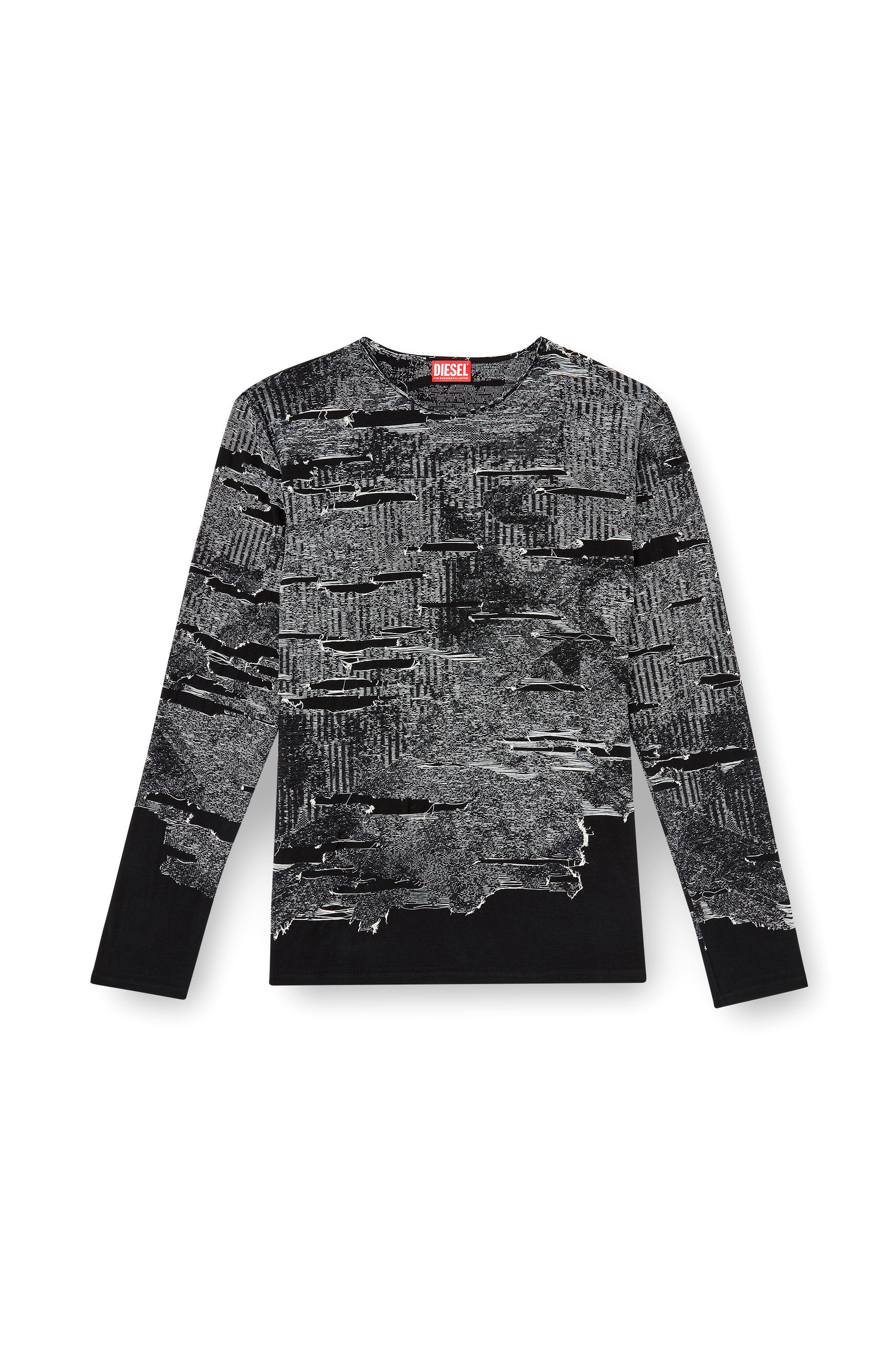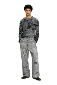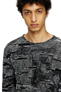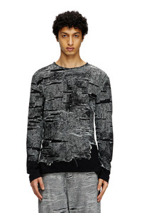 Product Description A masterpiece of illusion, this men's black and grey technical cotton jumper is fresh from the SS25 Runway Show. Drawing on Diesel's experimentality to create a trompe l'oeil distressed look, its seamless construction features three-dimensional jacquard artwork with the contrasting threads snipped away to create rips and holes. The final look is destroyed chaos: it looks accidental but is entirely intentional. ID: A181190AFBV Size & Fit Model is wearing a size L and is 182 cm / 5'10'' Check the size chart to choose the correct size. Materials & Details Composition: 85%COTTON 15%POLYPROPYLENE Spring Summer 2025 Runway Show