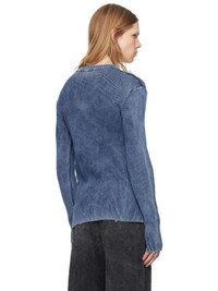 Stonewashed rib-knit indigo-dyed cotton sweater. Fading throughout. · Crewneck · Logo hardware with cutout at chest · Subtle distressing at hem and cuffs Supplier color: Blue