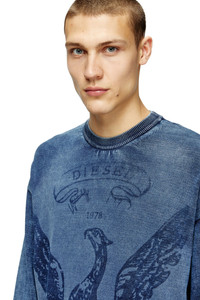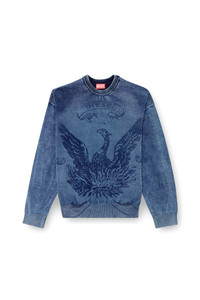 Product Description This men's sweater draws from Diesel's DNA fabric – denim – for design inspiration. Comfortably oversized, it's knitted from organic cotton, dyed in real indigo and stonewashed down to a lived-in blue hue. Laser technology is applied to the front, giving rise to the Phoenix logo. ID: A194810BJBS Size & Fit Model is wearing a size L and is 182 cm / 5'10'' Check the size chart to choose the correct size. Materials & Details Composition: 100%Cotton Loose fit Ribbed trims