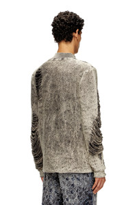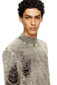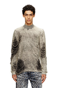 Product Description This men’s sweater is an exclusive FW25 Runway Show piece with a rebellious soul. Rips, hanging threads and laddered distressing reveal deeper indigo tones of the knit and signal the disruption of classic codes. It’s crafted from 100% organic cotton and features a mock neckline. ID: A214400LKDP Size & Fit Model is wearing a size L and is 182 cm / 5'10'' Check the size chart to choose the correct size. Materials & Details Composition: 100%Cotton Fall Winter 2025 Runway Show