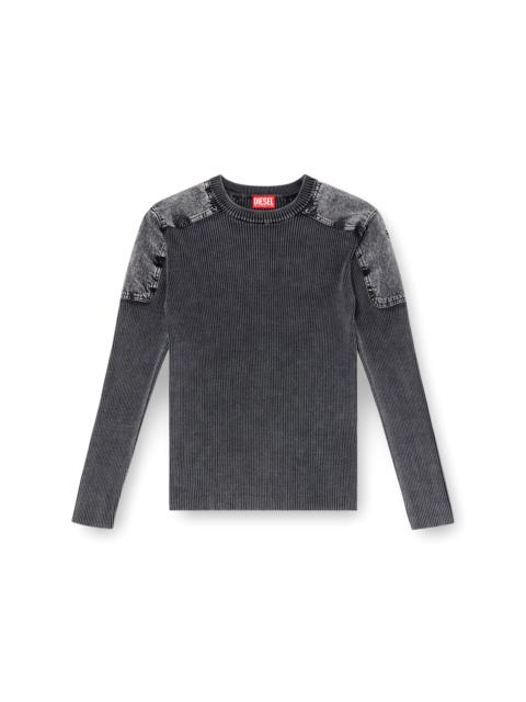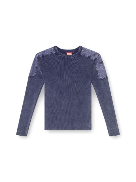 Product Description For the utilitarian city-dweller, this men’s jumper is defined by its marbled fade and treated denim panels that frame the shoulders. It’s rib-knitted from cotton in a close-fitting silhouette and hallmarked with an embroidered Oval D on the sleeve. ID: A168670QMAN Size & Fit Model is wearing a size L and is 182 cm / 5'10'' Check the size chart to choose the correct size. Materials & Details Composition: 100%Cotton