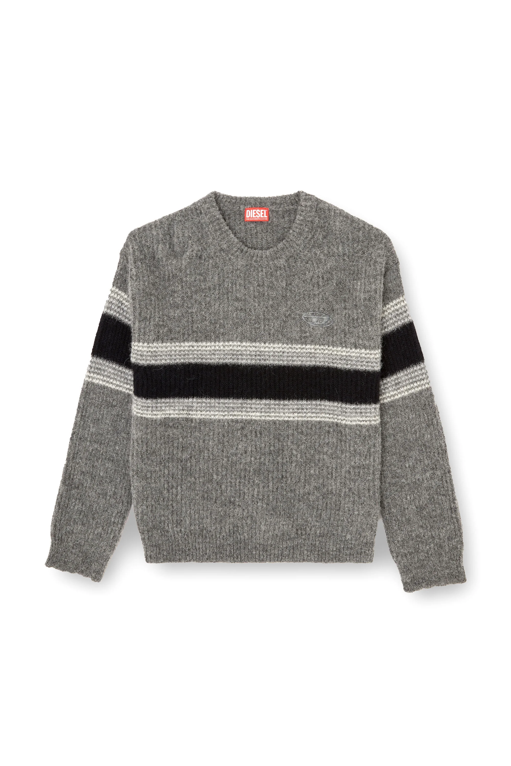 Product Description Adorned with bold stripes, this men’s sweater serves up street-edge cool. It’s rib-knitted from a wool-rich alpaca blend in a relaxed, loose fit. Take a closer look to spot the tonal Oval D logo embroidered on the chest. ID: A216820CJBS Size & Fit Model is wearing a size L and is 182 cm / 5'10'' Check the size chart to choose the correct size. Materials & Details Composition: 53%Alpaca 32%Polyamide-Nylon 15%Wool Loose fit Ribbed trims