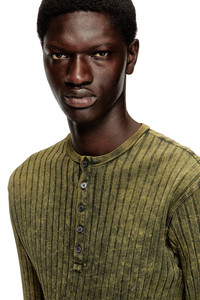 Product Description Knitted with a flat wide rib, this men's long-sleeve Henley top is part of the Fall Winter 2025 Runway Show collection. A pigment-dyed treatment gives it an uneven colouring for a lived-in look. Edged with a stretchy trim, the hem can be worn tucked up above the waist too. ID: A199460DCCB Size & Fit Model is wearing a size L and is 182 cm / 5'10'' Check the size chart to choose the correct size. Materials & Details Composition: 95%Cotton 5%Elastane-Spandex Fall Winter 2025 Runway Show Half-button closure