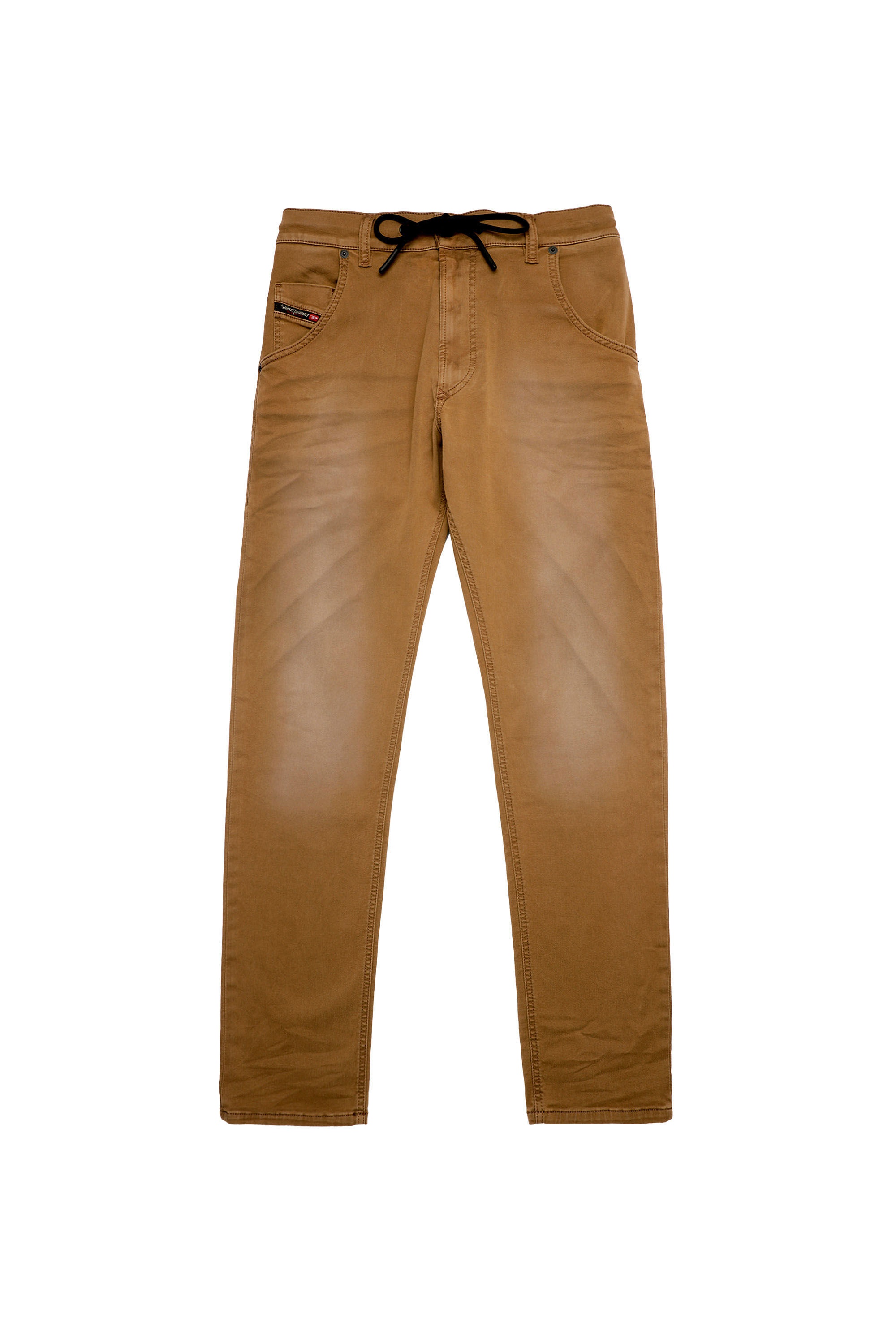 PRODUCT ID: A000880670M - 90%Cotton 8%Polyester 2%Elastane-Spandex - Tapered - Zip fly - JoggJeans - Medium treated - Colored Model is wearing a size 32 and is 188 cm / 6'2" Fits true to size, take your normal size. Tapered style crafted in JoggJeans® for the utmost comfort. The streamlined leg narrows to the ankle, and the waistband features a drawstring. The coloured fabric is stone washed and scratched at the hems to achieve a natural used effect and 3D finish. Diesel is a proud member of the Better Cotton Initiative. By buying cotton products from Diesel, you are supporting more sustainable cotton production. Better cotton is sourced via a system of Mass Balance and is not physically traceable to end products. See bettercotton.org/massbalance for details.