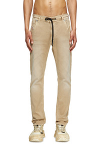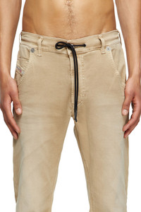 Product Description Tapered style crafted in JoggJeans® for the utmost comfort. The streamlined leg narrows to the ankle, and the waistband features a drawstring. The coloured fabric is stone washed and scratched at the hems to achieve a natural used effect and 3D finish. Diesel is a proud member of the Better Cotton Initiative. By buying cotton products from Diesel, you are supporting more sustainable cotton production. Better cotton is sourced via a system of Mass Balance and is not physically traceable to end products. See bettercotton.org/massbalance for details. ID: A000880670M Size & Fit Model is wearing a size 32 and is 188 cm / 6'2" Fit runs small. We recommend sizing up Materials & Details Composition: 90%Cotton 8%Polyester 2%Elastane-Spandex Fit: Regular Waist: Mid Leg: Tapered Wash: Medium treated Fabric: Joggjeans / Track Denim Color: Colored Closure: Zip fly Tapered Zip fly JoggJeans Medium treated Colored