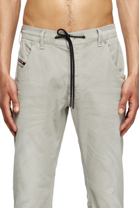 Product Description Tapered style crafted in JoggJeans® for the utmost comfort. The streamlined leg narrows to the ankle, and the waistband features a drawstring. The coloured fabric is stone washed and scratched at the hems to achieve a natural used effect and 3D finish. Diesel is a proud member of the Better Cotton Initiative. By buying cotton products from Diesel, you are supporting more sustainable cotton production. Better cotton is sourced via a system of Mass Balance and is not physically traceable to end products. See bettercotton.org/massbalance for details. ID: A000880670M Size & Fit Model is wearing a size 32 and is 188 cm / 6'2" Fit runs small. We recommend sizing up Materials & Details Composition: 90%Cotton 8%Polyester 2%Elastane-Spandex Fit: Regular Waist: Mid Leg: Tapered Wash: Medium treated Fabric: Joggjeans / Track Denim Color: Colored Closure: Zip fly Tapered Zip fly JoggJeans Medium treated Colored