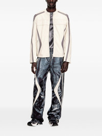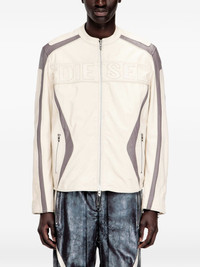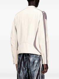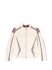 L-Adam leather jacket Highlights - Cream white/grey - Colourblock design - Logo lettering - Zip fastening - Side zip pockets Imported Composition Goat Skin 100% Washing instructions Read Manufacturer Guidelines