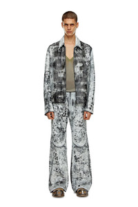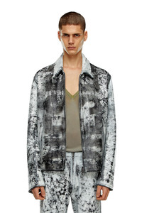 Model is wearing an IT size 48 and is 188 cm / 6'2" Fits true to size, take your normal size. Showcased on the Spring Summer '24 Runway Show, this men's jacket is crafted from black leather that's treated with a white spray-like finish, imparting a worn look in celebration of Diesel's signature distressed workmanship. Emblazoned with a maxi Diesel logo print on the front.