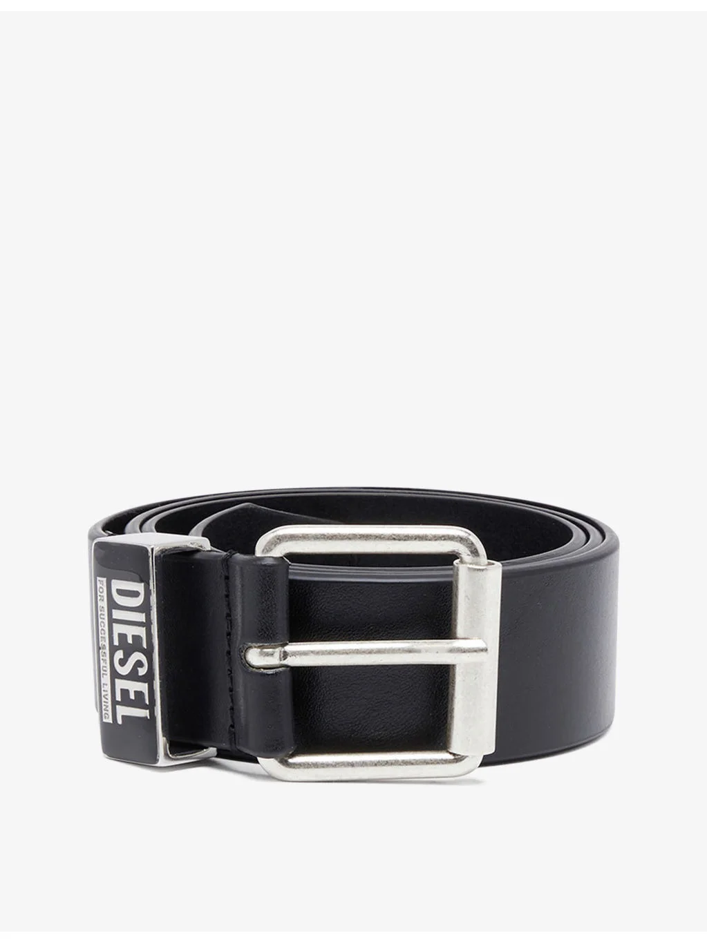 PRODUCT DETAILS - Diesel leather belt - 100% leather - Buckle fastening - Logo buckle, glossy enamelled finish, adjustable length - Specialist leather clean Ref: R04239157