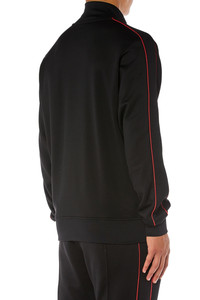 Product Description Men’s zipped sweatshirt in black loopback jersey, crafted using a mix of organic cotton and recycled fibres. Cut for a close fit with a mock neckline and zip pockets, this style has sporty piping running down the sleeves and a signature red D logo patch on the chest. ID: A149280DLAA Size & Fit Model is wearing a size L and is 182 cm / 5'10'' Check the size chart to choose the correct size. Materials & Details Composition: 55%Cotton 45%Polyamide-Nylon Slim fit Ribbed mock neck, cuffs and hem Zip pockets Zip closure