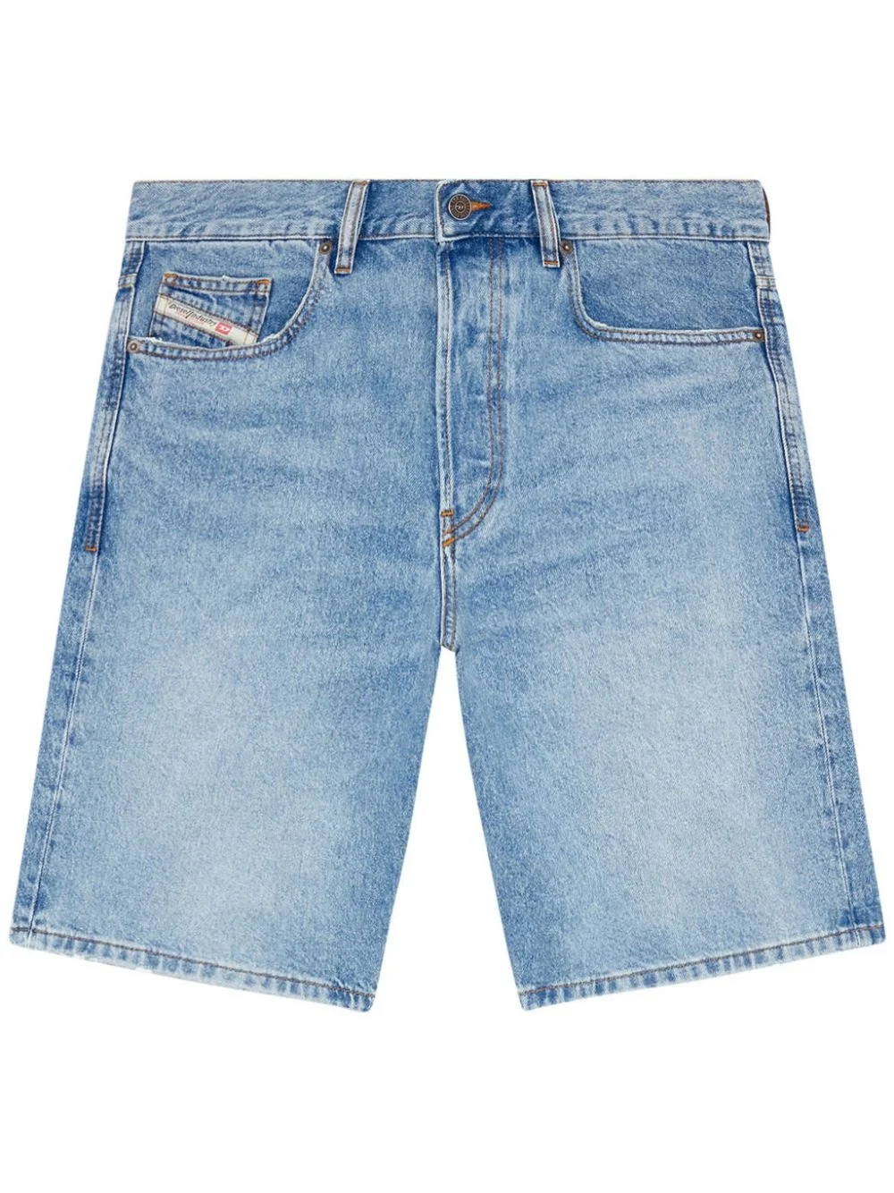 logo-applique denim shorts Diesel is renowned for its denim staples. A case in point, these blue shorts are crafted from washed cotton to a knee-length silhouette and adorned with a classic logo patch at the back. Highlights - Indigo blue - Cotton - Washed denim - Whiskering effect at the thighs - Logo patch to the front - Logo patch to the rear - Mid-rise - Belt loops - Straight leg - Concealed fly and button fastening - Classic five pockets - Knee-length Imported Composition Cotton 100% SIZE & FIT Model measurements Height 6 ft 2 in(1.87 m) Bust/Chest 36.41 in(92.5 cm) Hips 37 in(94 cm) Waist 29.52 in(75 cm) FittingInformation Designed for a regular fit, offering an even fit over the leg Sturdy and hard-wearing, this denim piece offers no stretch This piece fits true to size – take your usual size Washing instructions Machine Wash