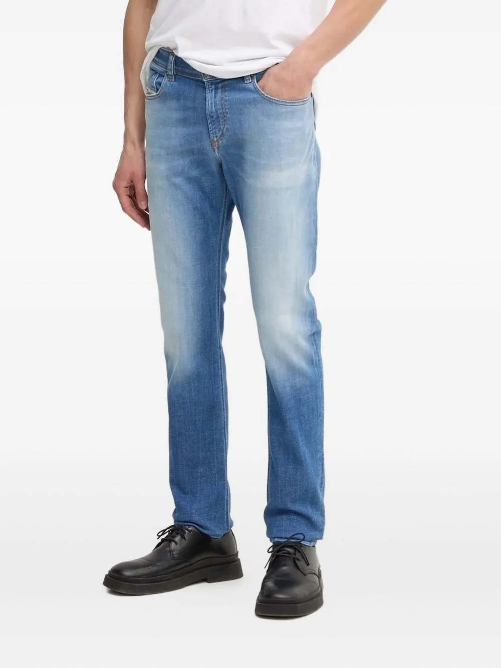 logo-plaque cotton jeans light blue five-pocket leather logo patch red stitching button fly belt loops Imported Composition Cotton 99%, Elastane 1% Washing instructions Read Manufacturer Guidelines