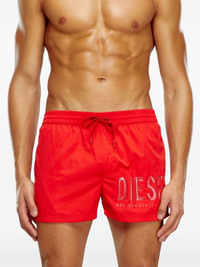 logo-print swim shorts Highlights - Red - Logo print to the front - Elasticated drawstring waistband - Two side inset pockets - Rear patch pocket - Straight hem - Be mindful to try on swimwear over your own garments. Imported Composition Polyester 100%