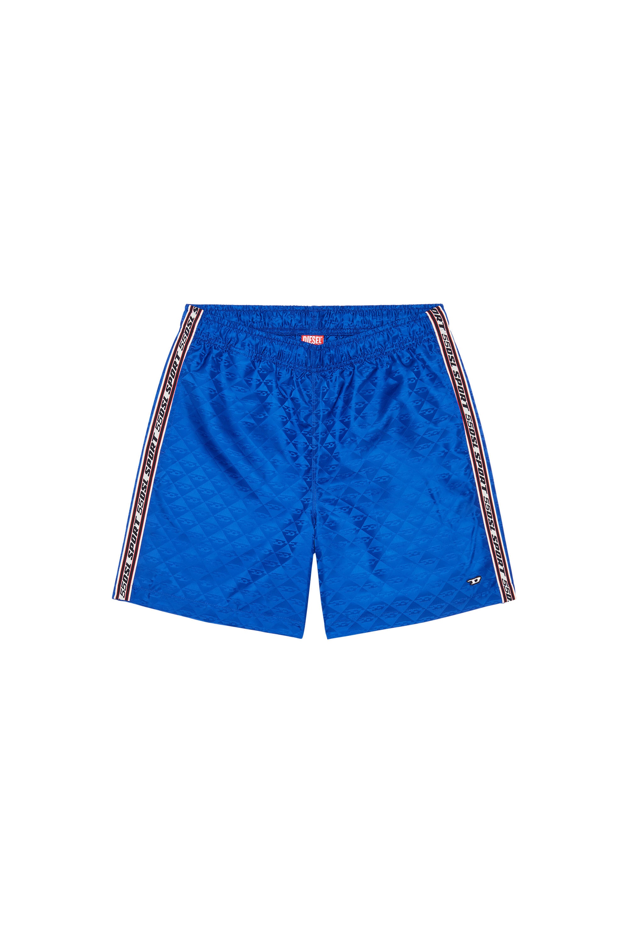 PRODUCT ID: A066210WDAZ - 100%Polyester - Application 80%Polyamide-Nylon 11%Polyester 9%Elastane-Spandex - DIESEL SPORT collection - Wicking finish - Elasticated waist with inner drawstring - Elasticated logo side bands Part of the DIESEL SPORT athleisure range, these retro shorts are cut from soft technical jacquard that wicks away moisture. The interplay of matte and shiny highlights the geometric D logo motif woven into the fabric. Complete with D embroidery and brand Wicking finish Stay cool and dry with fabrics designed to pull moisture away from the skin