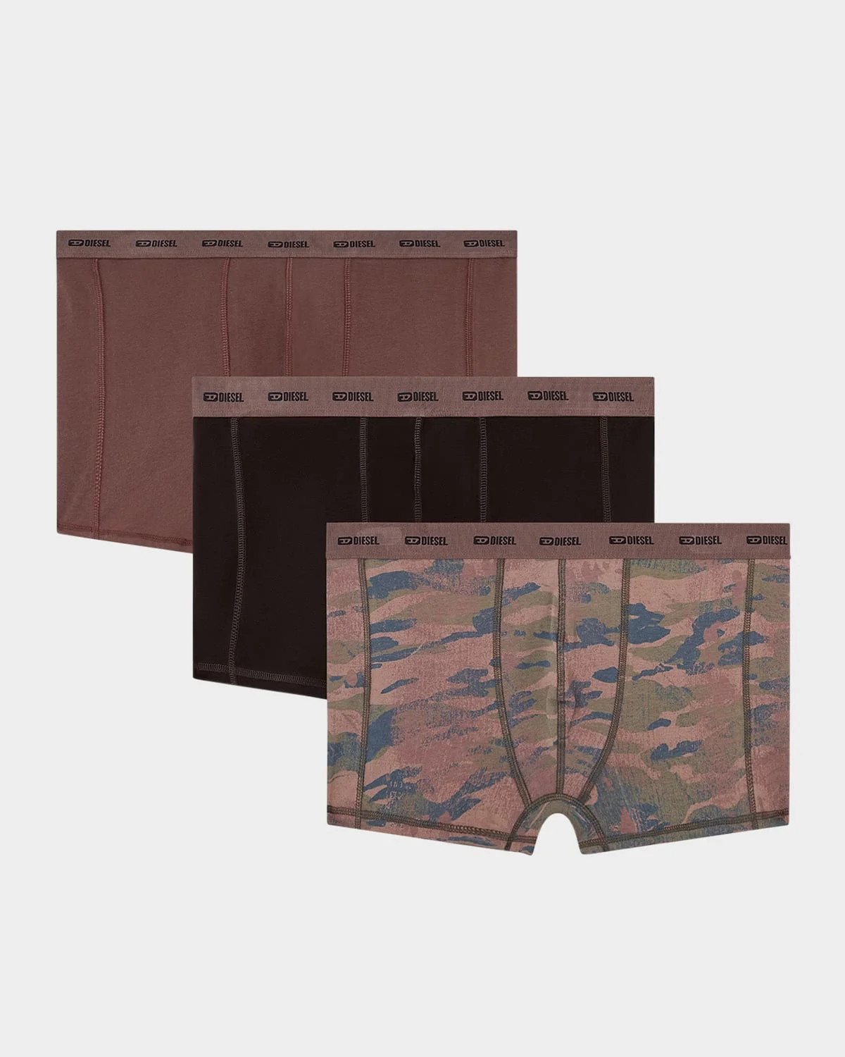 Diesel set of three men's boxer briefs cut from soft and breathable stretch cotton Jacquard logo elasticized waistband Contrast stitching Cotton/elastane Machine wash cold Imported