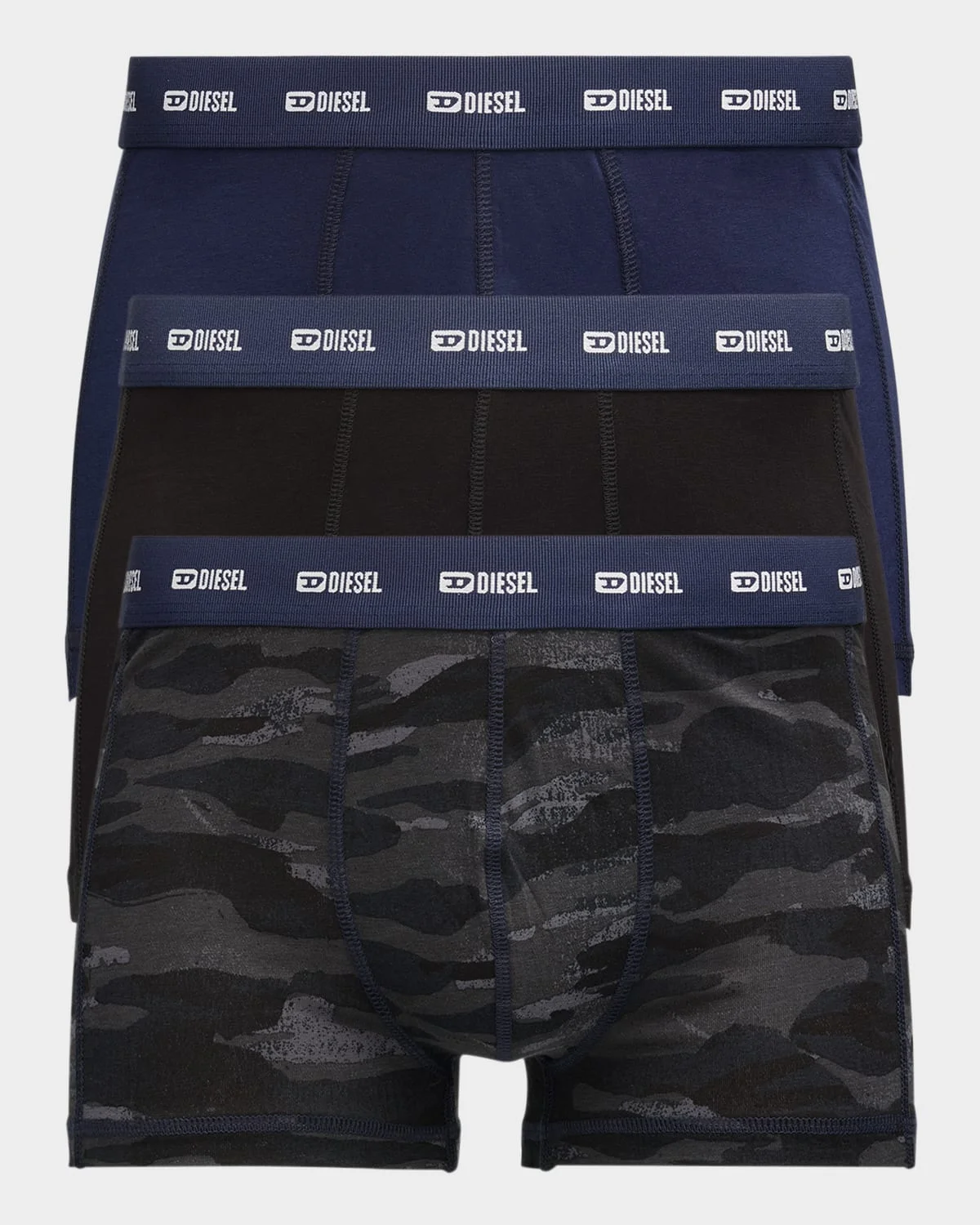 Diesel set of three men's boxer briefs cut from soft and breathable stretch cotton Jacquard logo elasticized waistband Contrast stitching Cotton/elastane Machine wash cold Imported