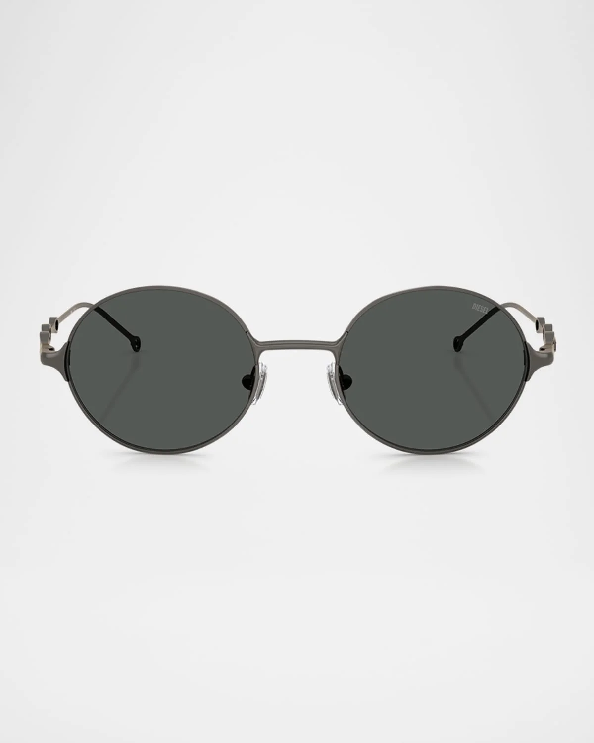 - Avant-garde style meets streetwear-inspired shapes in trini-d-y metal. Unapologetically bold with statement details, this collection of catwalk and commercial frames is all about impactful style. Designed for a fashion-forward look with an individualistic edge. an iconic design with an authentic diesel attitude. The round shape channels a creative spirit, while sleek frames in metallic colors add an industrial edge. Featuring standout temples with three cut-out beads and a custom d logo. A classic look with an alternative vibe. metal frames are available in matte gunmetal, shiny brushed antique light-yellow brown, shiny silver and powder matte black. Colorways for the round lenses include dark grey, grey, mirror silver or light to dark gradient green. Dl1008 features a matte gun metal color on a round frame with dark grey lenses. Each pair of sunglasses come with a cleaning cloth and case to clean and protect your sunglasses from scratches and damage. To protect your eyes from harmful uv rays, these sunglasses include lenses that are coated with 100% uv protection. - Diesel round sunglasses in metal - Lens/bridge/temple (in mm): - 49-20-145 - Solid-color lenses - Logo on the left lens - Adjustable nose pads - Logo on the temples - Thin arms with cutouts - Metal - Spot clean - 100% UVA/UVB protection - Made in Italy - Proposition 65 warning for California residents