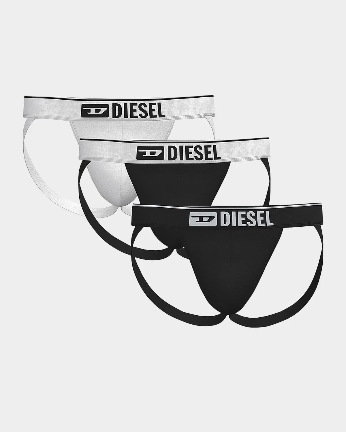 Diesel set of three jock straps cut from stretch cotton Denim division logo on the elasticized waistband Cotton/elastane Machine wash cold Imported