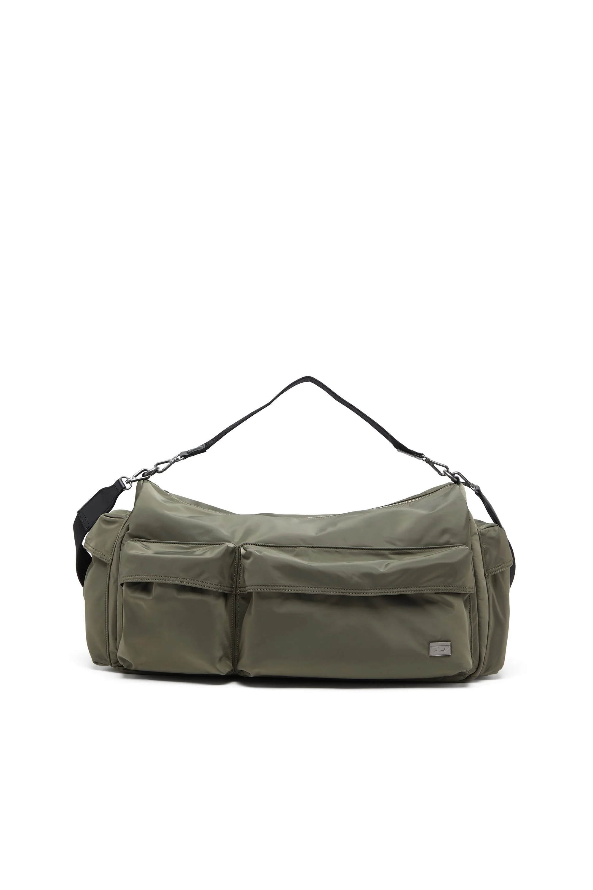 Product Description This unisex duffle bag has a lightweight utilitarian construction boasting a multitude of external and internal pockets that guarantee easy access to your belongings. It's built from military green shell with a metal logo plaque on the front. The wide strap can be detached. ID: X10356P8166 Materials & Details Composition: 100%Polyester Detachable adjustable shoulder strap Zip closureMultiple front and side flap pockets, flat back pocket and multiple internal pocketsLogo jacquard liningUnisex