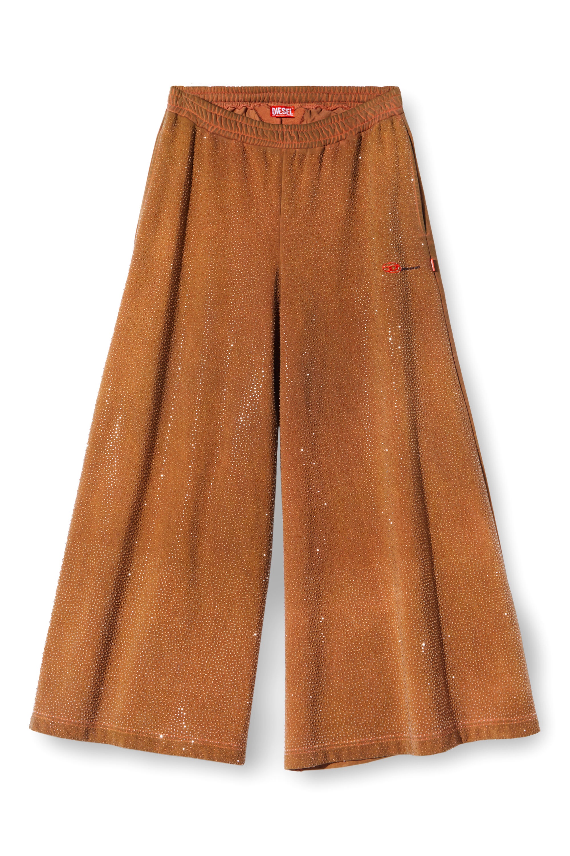 Product Description These men's cotton palazzo track pants are part of a non-conformist, gender-liberating capsule, co-designed by Diesel and Maneskin's frontman Damiano David. Unapologetically voluminous with pooling hems, they feature a clash of dirty effects and bling – note the tiny transparent crystals saturating the front. Complete with the collection's unique co-branding. ID: A178170SPAG Size & Fit Model is wearing a size L and is 182 cm / 5'10''. Model is wearing a size S and is 175 cm / 5'7''. UNISEX SIZES. FOR MAN: Fits true to size, take your normal size. FOR WOMAN: Oversize fit, woman that prefers regular fit may order one size down. Materials & Details Composition: 100%Cotton Diesel x Damiano David capsule collection Wide, flared leg Elasticated drawstring waist Side and back pockets