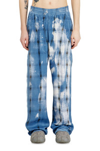 Product Description Diesel doubles down on treatment ingenuity for the SS26 Runway Show. Part of the collection, these men’s trousers — cut from fluid satin — are bleached from the inside out, generating an X-ray effect that makes the check print seem revealed from within rather than applied to the surface. The dropped waist seam and pattern contrast shift the eyeline, while zips at the cuffs allow them to taper or flare at will. ID: A235360JMCC Size & Fit Model is wearing a size L and is 182 cm / 5'10'' Check the size chart to choose the correct size. Materials & Details Composition: 100%Viscose-Rayon Spring Summer 2026 Runway Show Elasticated drawstring waist Side pockets and Back pockets Zipped cuffs