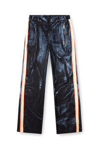 Product Description These men's fluid trousers are cut from viscose containing half and half responsibly-sourced and ECOVERO™ fibres. Despite fitting like joggers, they look like worn-in black leather biker pants with a trompe l'oeil print — note the zips, panelling and contrast side bands. ID: A195410NMAN Size & Fit Model is wearing a size L and is 182 cm / 5'10'' Check the size chart to choose the correct size. Materials & Details Composition: 100%Viscose-Rayon Regular fit Elasticated waistSide pocketsBack welt pockets