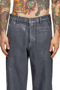 Product Description Loose style with a medium waist and straight leg. A nod to classic chino pants, it features slant pockets and an ironed crease on the front of the leg. Closed with a button fly. This fix denim is crafted from cotton and hemp, enriched with a marbled wash for a nuanced grey finish. Parts of the garment are strategically coated with ceramic paper sheets, glued and pressed onto the fabric, creating a distinctive tonal patina effect on the front. ID: A16445007AP Size & Fit Model is wearing a size 32 and is 182 cm / 5'10'' Check the size chart to choose the correct size. Materials & Details Composition: 80%Cotton 20%True Hemp Fit: Loose Waist: Mid Leg: Straight Wash: Coated Fabric: Non-Stretch Color: Grey Closure: Button fly