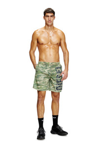 Product Description Cut in a long profile, these men's swim shorts play with camouflage – the utilitarian motif is printed all-over and makes up the logo, albeit in a different tone. They're made from lightweight, water-repellent ripstop using 50% recycled fibres and dry off quickly. An internal drawcord ensures an adjustable fit. ID: A174750HJBM Size & Fit Model is wearing a size L and is 182 cm / 5'10'' Check the size chart to choose the correct size. Materials & Details Composition: 100%Polyamide-Nylon 47.5 cm / 18.7" outseam Elasticated waistband with internal drawstring Side pockets and back patch pocket Rubber-coated metal eyelets for water drainage Recycled stretch lining