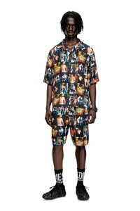 Product Description Part of a sizzling collaboration between Diesel and the Tom of Finland Foundation, just in time for Pride, this short-sleeve shirt is a genderless design flaunting a selection of prints from the association's artists. Crafted from fluid viscose, it's buttoned on the front and branded with the capsule's custom herringbone tape on the back of the neck, featuring an inspiring message from Tom of Finland himself. ID: P015490SPBX Materials & Details Composition: 100%Viscose-Rayon Diesel x Tom of Finland Foundation Regular fit Camp collar Button closure