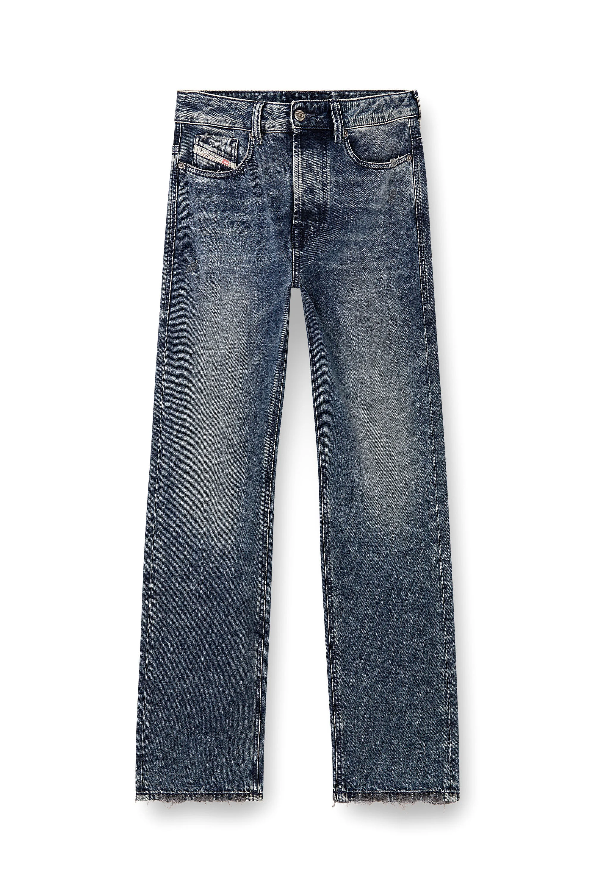 Product Description Relaxed fit with a medium waist that sits on the hips, and a straight leg. The back pockets feature double eagle stitching. Button fly. Made from fix denim in 100% regenerative cotton. This dark blue wash belongs to the Diesel DNA selection of iconic washes, featuring a marbled look with soft whiskers, enhanced by an overdyed treatment: the garment is sprayed all-over with black earth pigments for a subtle dirt-effect finish. ID: A1579509N68 Size & Fit Model is wearing a size 32 and is 182 cm / 5'10'' Check the size chart to choose the correct size. Materials & Details Composition: 100%Cotton Fit: Relaxed Waist: Mid Wash: Medium treated Fabric: Non-Stretch Closure: Button fly