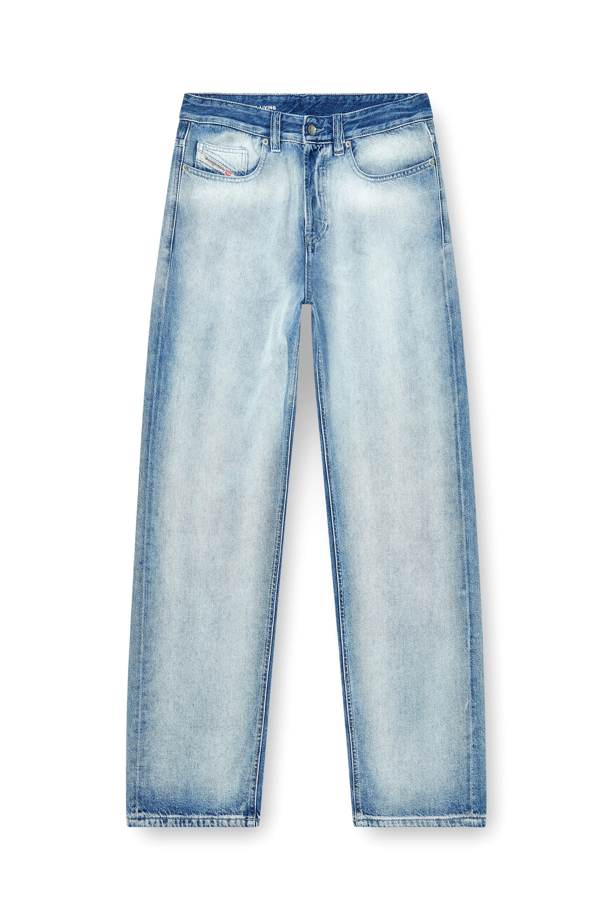 Product Description Relaxed fit with a low waist, low crotch, and wide leg. This longer, looser silhouette has room for swagger. Button fly. Made from soft, medium-lightweight fix denim in cotton and lyocell, this light blue wash stands out for its subtle “skeleton” effect, created through manual spray work and precise masking techniques that preserve darker tones along the seams. Sustainable treatments, including synthetic pumice and water-free washing, enhance the worn-in look while reducing environmental impact. Indigo-dyed threads fade naturally with the fabric over time, and a jewel-like button adds a refined finishing touch to this everyday piece. ID: A2385109P29 Size & Fit Model is wearing a size 32 and is 182 cm / 5'10'' Check the size chart to choose the correct size. Materials & Details Composition: 82%Cotton 18%Lyocell Fit: Relaxed Waist: Low Wash: Medium treated Fabric: Non-Stretch Closure: Button fly Crotch: Low