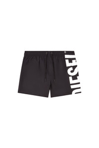 Product Description Emblazoned with an oversized logo print down the leg, these men's mid-length swim shorts have a drawstring-adjustable waist, handy pockets and rubber-coated eyelets for easy drainage. The lightweight quick-dry shell as well as the lining are crafted using recycled materials. ID: A174460NJAS Size & Fit Model is wearing a size L and is 182 cm / 5'10'' Check the size chart to choose the correct size. Materials & Details Composition: 100%Polyester Elasticated drawstring waist Side pockets Back patch pocket Rubberised eyelets Stretch lining