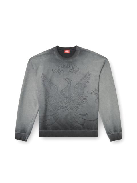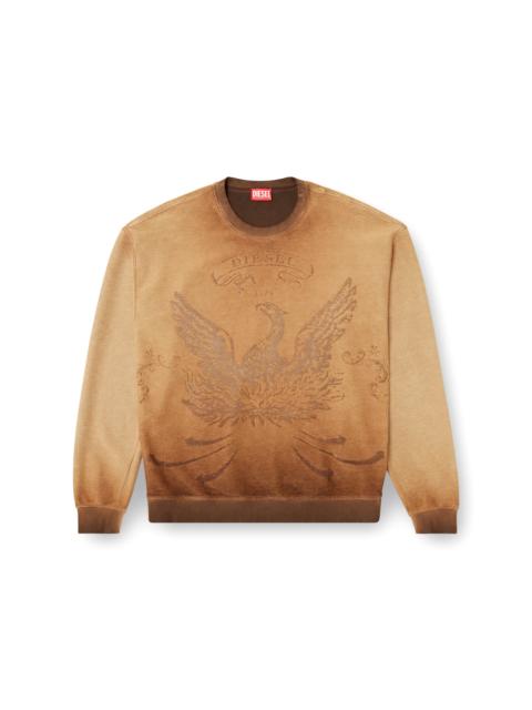 Product Description Constructed with the looped side facing outwards, this men’s loopback-jersey sweatshirt is a subtly textural piece with a burnished look and a unique version of the Diesel Phoenix – the iconic logo graphic has been lasered-etched for a burnout effect. It’s made using organic cotton and recycled fibres in a relaxed profile. ID: A192890IKBV Size & Fit Model is wearing a size L and is 182 cm / 5'10'' Check the size chart to choose the correct size. Materials & Details Composition: 57%Polyester 43%Cotton, Rib 96%Cotton 4%Elastane-Spandex Relaxed fit Ribbed trims
