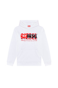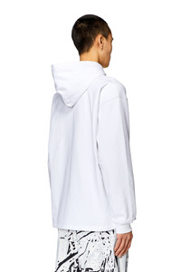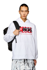 Model is wearing a size L and is 182 cm / 5'10'' Fits true to size, take your normal size. Men's relaxed-fit hoodie with side slits. Made from loopback cotton jersey, this style is emblazoned with a trio of For Successful Living, Denim Division and Oval D logos layered one upon another – each design is rendered using a different technique, such as print, appliqué and 3D embroidery. By buying cotton products from Diesel, you’re supporting responsible cotton production through Better Cotton”.