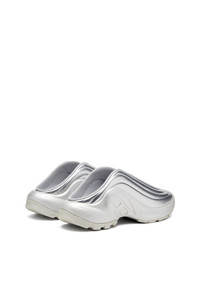 Product Description A mule iteration of the S-D-RUNNER-X sneaker, these genderless shoes combine a sculptural silhouette with a futuristic shine of metallic silver. The curve of the soft, slip-on upper is echoed in the meticulous stitching, complemented by an exaggerated sole that’s embossed with a folded-effect Oval D logo. ID: Y03548P1660 Materials & Details Composition: 100%Polyurethane Slip-on Gripped rubber outsole Unisex