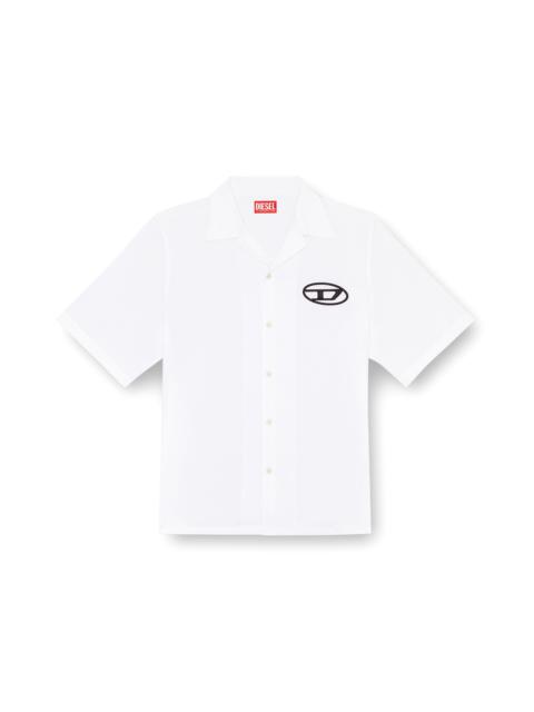 Product Description Men's short-sleeve shirt in compact poplin, embroidered on the chest with a bold Oval D logo. Crafted using 100% organic cotton, this style features a relaxed camp collar and regular fit. ID: A146360PCAL Size & Fit Model is wearing an IT size 48 and is 188 cm / 6'2" Check the size chart to choose the correct size. Materials & Details Composition: 100%Cotton Regular fit Button closure