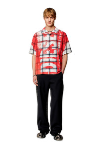 Model is wearing an IT size 48 and is 188 cm / 6'2" Fits true to size, take your normal size. Cut for a regular fit, this men’s bowling shirt is made from a fluid viscose blend printed with blurred-effect windowpane checks. The fading red Diesel logo blasted over the front gives this style a distressed, worn-in feel.