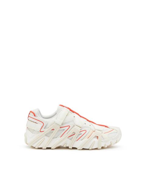PRODUCT ID: Y02911P4910 - 68%Polyester 17%Polyurethane 12%Cow Leather 3%Thermoplastic Polyurethanes - Fall Winter 2022 Runway Show - Red color: limited edition - Adjustable velcro straps over the foot and at the back - Gripped rubber sole Men's FW Runway Show Collection '22 sneakers built from breathable mesh overlaid with leather. This shoe features a cage-like harness made with crossover grosgrain straps and rubber mounts that connect to the industrial sole. The sole wraps over the toe and is finished with archive-inspired rubber 'teeth' for a unique look. The red variant of this item is a limited edition.
