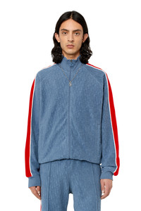 PRODUCT ID: A090180EJAF - 75%Cotton 23%Polyester 2%Elastane-Spandex - Contrast 70%Cotton 30%Polyester - Rib 98%Cotton 2%Elastane-Spandex - Slim fit - Zip closure - Ribbed cuffs and hem Model is wearing a size L and is 182 cm / 5'10'' Fits true to size, take your normal size. This men's tracksuit top is made from logo-jacquard chenille to create an embossed effect. A close-fitting style, it has contrasting sleeve bands outlined with piping and a logo zip pull. The neck, cuffs and hem are ribbed for comfort.