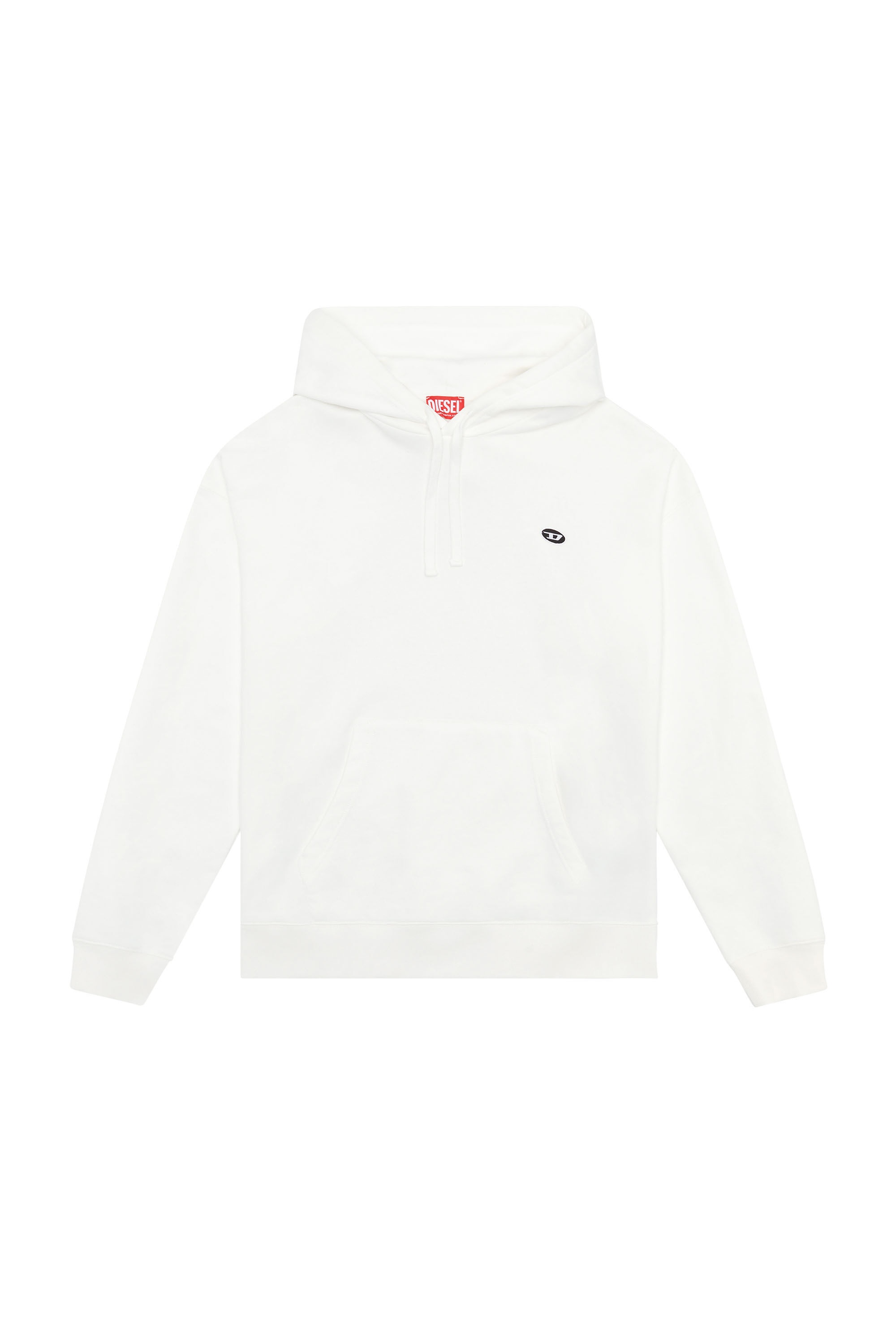 PRODUCT ID: A037860BKAF - Composition: 100%Cotton, Rib 96%Cotton 4%Elastane-Spandex - Regular fit - Dropped shoulders - Drawstring hood - Pouch pocket - Ribbed cuffs and hem Model is wearing a size L and is 182 cm / 5'10'' Fits true to size, take your normal size. Men's organic cotton sweatshirt, flaunting a regular fit with dropped shoulders. Topped with a drawstring hood, it features an oval 'D' patch on the chest.
