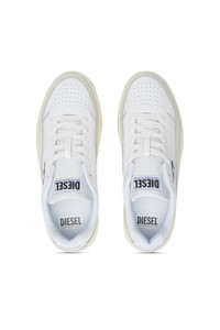 Product Description Men's low top sneaker made of soft calfskin leather with avant garde details. The nineties inspired upper has a classic silhouette, with contrasting Diesel logos on the tongue at the side. The chunky rubber sole has a custom tread. ID: Y03608P5576 Materials & Details Composition: 100%Cow Leather