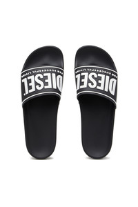 These pool slides are styled with moulded footbeds and gripped logo soles. The wide upper band is branded with a 3D Diesel For Successful Living logo and trim.