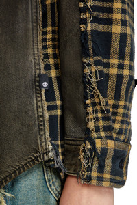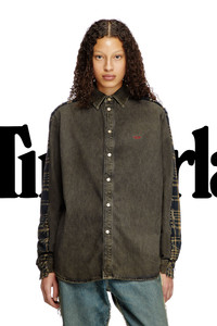 Product Description Two competitors. One goal. DIESELVES TIMBERLAND is the second chapter of the DIESELVES program, a continuous capsule in which two iconic brands share creative and manufacturing resources to find impactful solutions to the perennial problem of overproduction.This unisex shirt is fully constructed from fabric sourced from both brands' unsold stock. The front part is Diesel's D-Simply denim shirt, joined and washed with the back half of a Timberland blue check style. The garment is overdyed with beige pigments, and features raw-cut seams that are needle-stitched using black thread. Customised with a red embroidered D on the chest, a black Timberland logo tag on the left side, and the collab label on the back.Diesel and Timberland contributed 100.000€ to the OTB Foundation to benefit projects with the UNHCR, the UN Refugee Agency. This partnership is about finding solutions to empower change. ID: P01488007BL Size & Fit Model is wearing a size L and is 188 cm / 6'2". Model is wearing a size L and is 177 cm / 5'9". Materials & Details Composition: 100%Cotton Diesel <3 Timberland Regular fit Button closure Diesel <3 Timberland logo tape on the back yoke