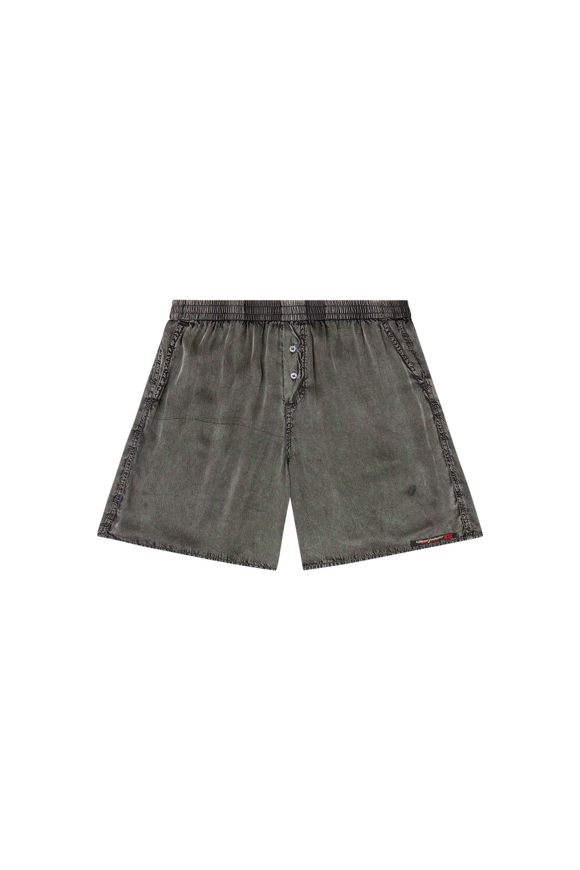 Product Description These men's relaxed boxer shorts feature a cool trompe l'oeil effect that nods to Diesel's heritage – the fabric looks like marbled-effect black denim, yet feel surprisingly smooth and fluid. Detailed with a jean-stye Diesel Industry logo, they're cut from lower-impact ECOVERO™ viscose fabric and have a hidden drawstring to adjust the waist. ID: A191660TKBS Size & Fit Model is wearing a size L and is 182 cm / 5'10'' Check the size chart to choose the correct size. Materials & Details Composition: 100%Viscose-Rayon Drawstring waist