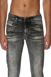 Model is wearing a size 31 and is 182 cm / 5'10'' Fits true to size, take your normal size. Skinny style with a low waist and regular-length, narrow leg from thigh to ankle, designed with a punk-rock attitude in mind. Crafted from stretch denim in an organic cotton blend, this black wash is treated to create a visually impactful used look, with shades of medium to light grey.